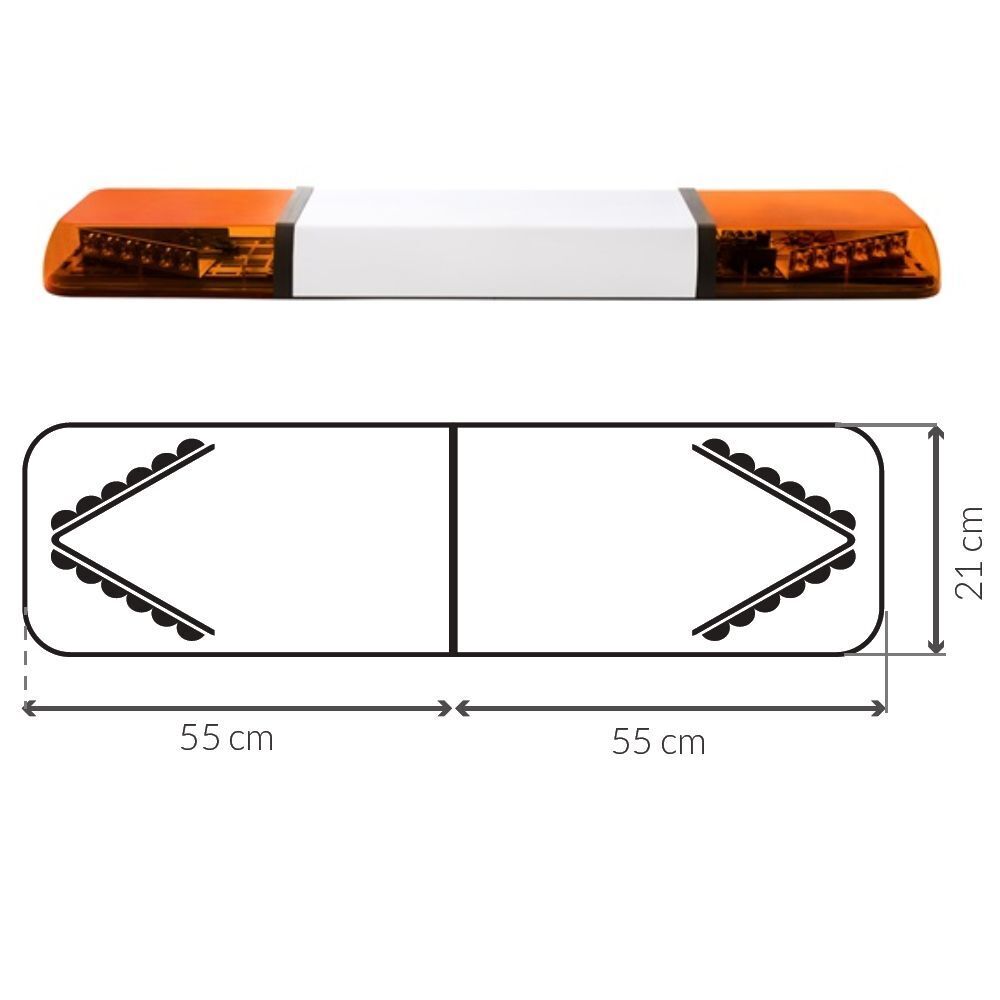 Cette rampe de signalisation de 110 cm est adaptée aux véhicules d'interventions dont la largeur est comprise entre environ 130 et 200 cm.