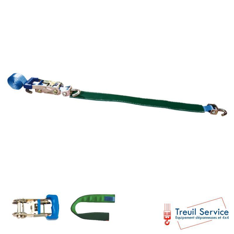 Sangle de retenue de roue avec 3 crochets pivotants et support en plastique, 50 mm, 2,5M, 5 tonnes